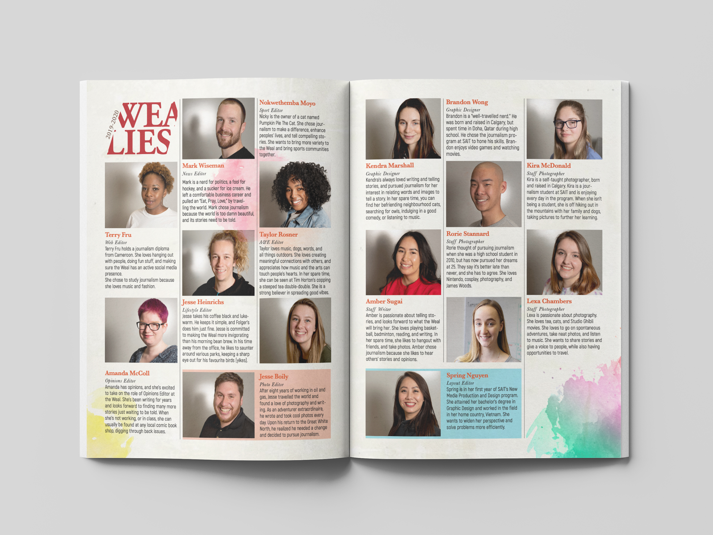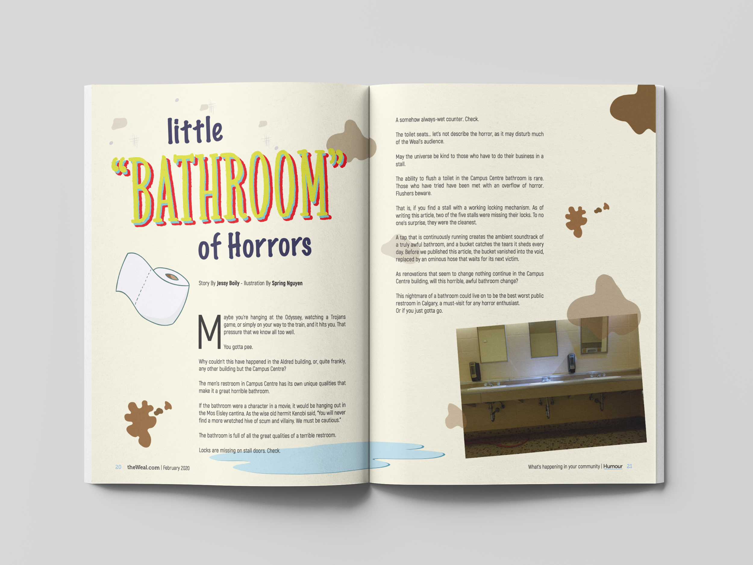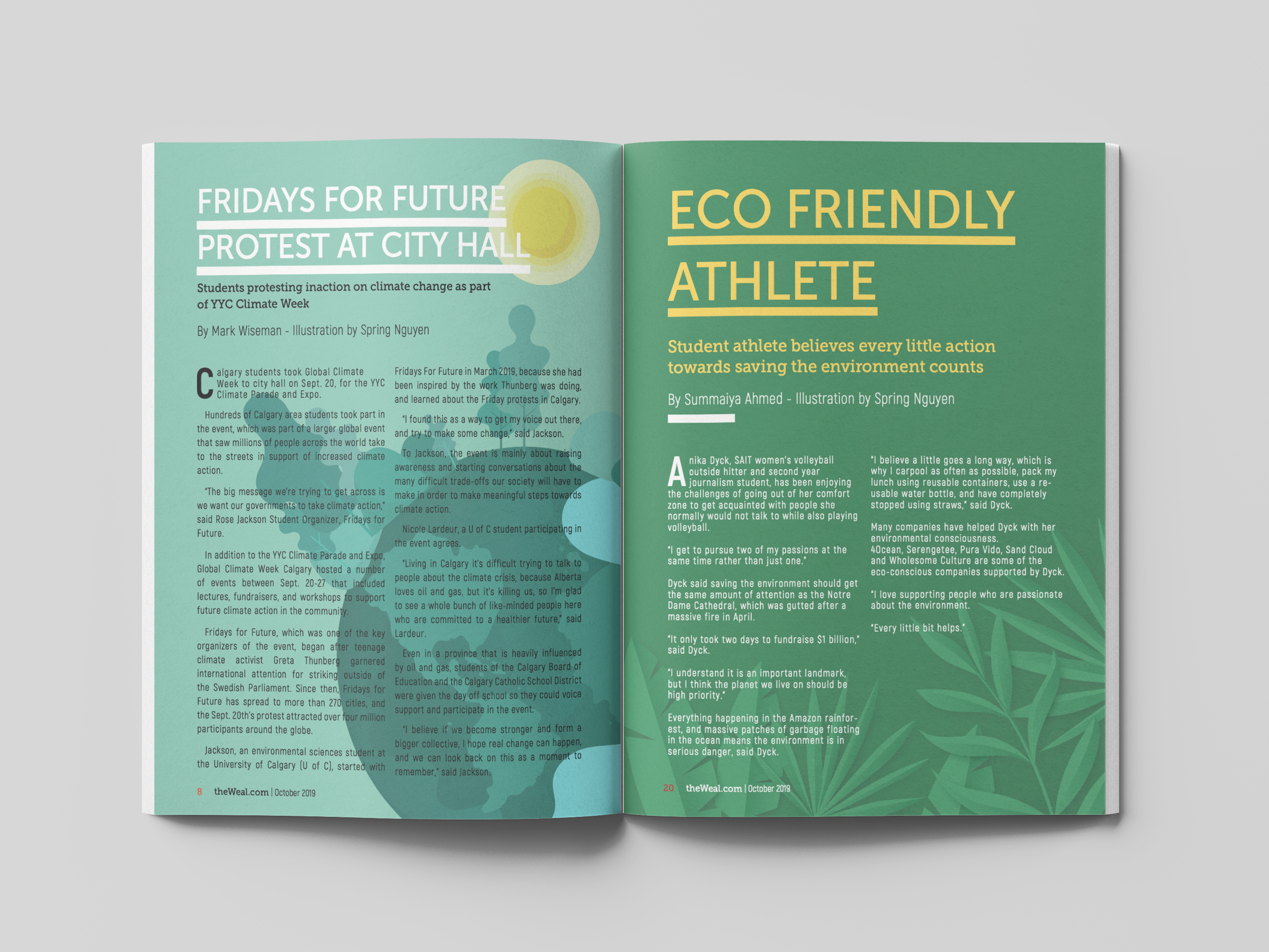 I was a Layout Editor and Illustrator at The Weal Magazine, a monthly press of SAIT Students’ Association (SAITSA) in 2019-2020. During this time, I’ve re-branded a new logo and master head, which have been used until now.